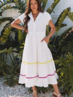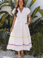 2025 Summer New Style French Color-Plaid V-Neck Dress for Women – Independent Stand Fashion Retro Loose High-Waist Long Dress for Women