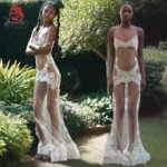 Amazon Wish cross-border chiffon lace-edge embroidered fairy godmother halter dress with fish tail 9062
