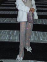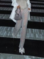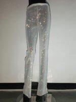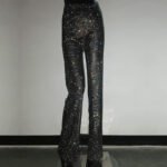 Amazon’s Hot Girl Beaded Mesh Casual Pants – Beaded Hole-out Long Pants for Sexy European Women – Cross-border Mesh Long Pants for Women