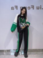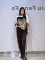 Cross-border foreign trade women’s dress-up oversized sequined set for autumn, featuring a round-neck pullover, long-sleeved shirt, and long pants, complete set.