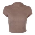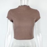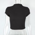 European and American low-cut fitted top for women, 2023 Amazon summer new style, fitted outerwear with spliced design, semi-high collar, short sleeves t-shirt
