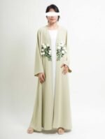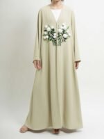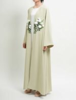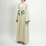New model three-dimensional flower-decorated Middle Eastern women’s abaya with draping feature, exuding a sense of elegance and sophistication. A Muslim long dress for women.