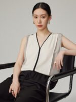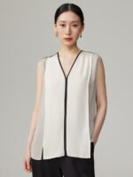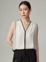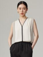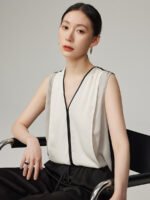 Selected high-quality mulberry silk sleeveless blouse for ladies in a loose and lightweight style. New style French elegant business casual silk v-neck top.
