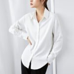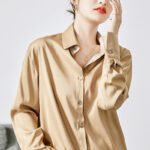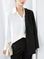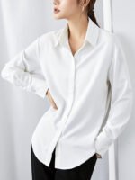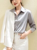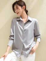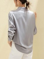 Shirt women’s soft fabric long-sleeved design with a small-town feel, loose and comfortable, made of silk-acetate satin, top in white, French-style women’s shirt