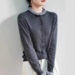 Spring's sweet fragrance, light and comfortable, retro lace babydoll collar, wool blend knitted cardigan for women